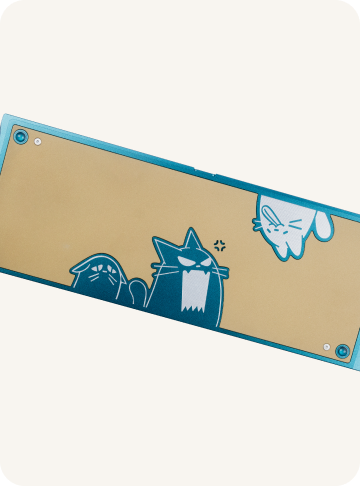 We're shaking things up with the Cat:3 collection by using a unique production technique for each keyboard. You know we love a good risk: we engrave after anodizing to ensure your keyboard stands out. And what's a cool technique without a killer design? The design captures playful cat personalities, adding a vibrant and fun vibe to each keyboard.